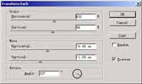 單獨變形命令同樣也會出現一個對話框:通過對話框中的滑動桿同樣可以調節變形、移動和旋轉的角度。重設調節框表示重新設置圖形的處置框。