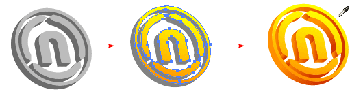 選擇陰影(深層)路徑,用吸管工具點擊字體路徑,這樣就可以復制漸變填充了。