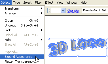 現(xiàn)在到對象菜單選擇擴展外觀來移除效果并得到路徑。在擴大文本對象后,在對象菜單下選擇去除群組或者按ctrl+shift+g。你也許需要執(zhí)行4到5次去除群組才能把對象的組合全部去除。