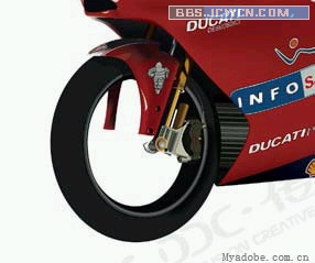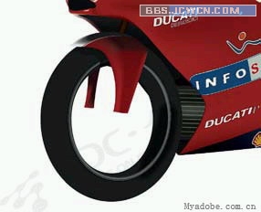 11.留意摩托的每一各部件之間的組合,過渡還有光澤的表現(xiàn)。(見圖011 和012)。