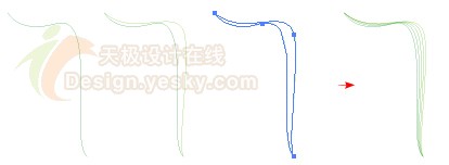 現(xiàn)在使用“選擇”工具選中兩條花瓣路徑,然后選擇菜單命令“對(duì)象>混合>建立混合”(或按快捷鍵ctrl + alt + b),這時(shí)就可以得到如圖3中右圖所示的結(jié)果。