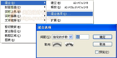 illustrator中的“混合”工具和“建立混合”命令可用于在兩個(gè)或多個(gè)選定對(duì)象之間創(chuàng)建一系列中間對(duì)象。混合的最簡(jiǎn)單用途之一就是在兩個(gè)對(duì)象之間平均創(chuàng)建和分布形狀。也可以在兩個(gè)開放路徑之間進(jìn)行混合,以在對(duì)象之間創(chuàng)建平滑過渡;或結(jié)合顏色和對(duì)象的混合,在特定對(duì)象形狀中創(chuàng)建顏色過渡。