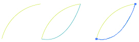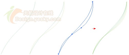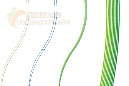 使用“鋼筆”工具繪制出如圖1所示的兩個(gè)條描邊路徑,描邊的顏色一條是黃色,一條是藍(lán)色,注意這兩個(gè)條路徑是沒有填色的。