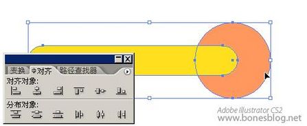 使用選擇工具將兩個形狀都選中,單擊對齊調板中的“垂直居中”按鈕,使得圓角矩形與圓形對齊。
