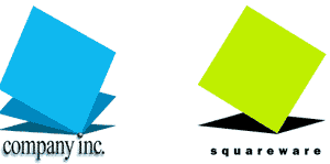 在兩個logo中的四方形繞交點呈反時針旋轉體現出陰影投射的效果。不過前者多出一個中間變化的過渡(即第二個方形),后者是直接進行投射。
