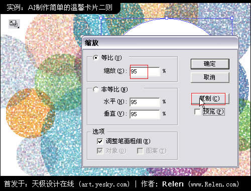 彈出縮放面板。填寫95%,并選擇復制一個95%的圓。