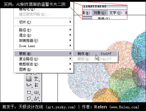選擇菜單 對象>蒙版>制作 閑麻煩的朋友,可以直接鍵入[ctrl +7]