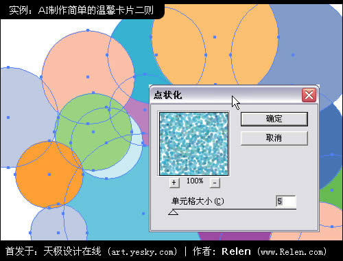 選擇菜單中的 效果>像素化>點狀化 對這些圓進行藝術處理。