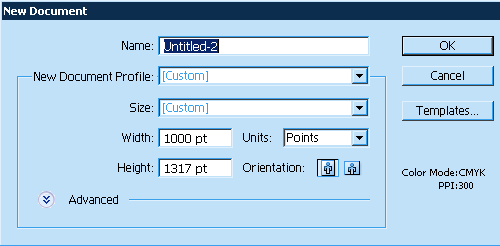 這些數(shù)值將成為我們新建 illustrator 文檔中的輔助線高度,我們將在這個新文檔中將字形從 illustrator 復(fù)制到 fontlab。好了,我們新建一個 illustrator 文檔,單位是磅(points),高度是 1000 加上你下降部的高度。本例中,就是1000 + 317 = 1317。