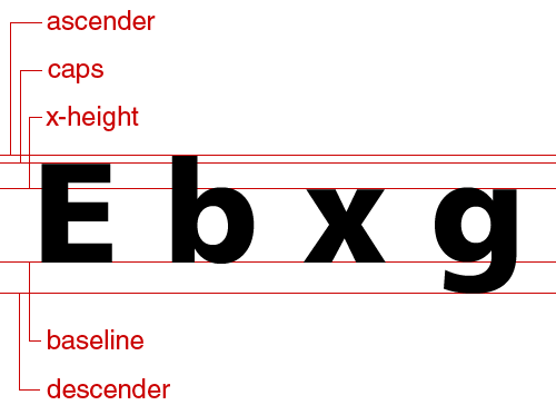 接下來就是要測量你的畫稿,包括所有重要的垂直度量尺寸:基線、下降部、x-高度、大寫高度、上升部。見下面的圖釋。