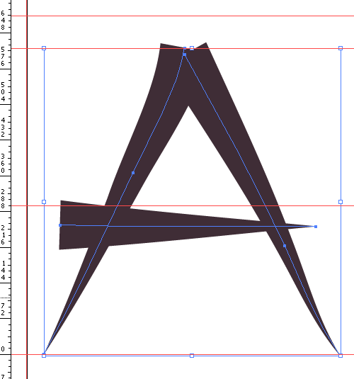 確保在 illustrator 中打開標尺(ctrl-r),然后從頂部標尺中拖拽出幾條輔助線,標明字形的所有關(guān)鍵高度。