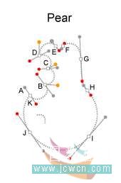 說明一下分解圖。灰色和紅色的點,是鋼筆來出一個節點拉出的二根原始手柄,黃色的點的手柄,是對灰色手柄進行調整后的位置。鋼筆工具要配合alt工具一起用,手柄的長度和方向對路徑產生直接影響,體會這種變化 ,掌握鋼筆工具的使用。