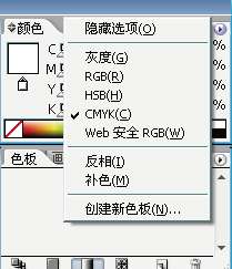 2、雙擊上圖中白色色標,在顏色面板中更改顏色模式為cmyk。