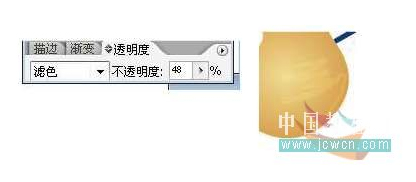 3,打開 透明度面板“窗口”-“透明度”,設置模式為濾色和透明度。如圖: