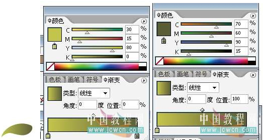 選中葉子路徑,實用梨上色的方法,填充漸變色。漸變類型為線性。