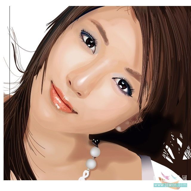 31開始描繪裝飾品,這里的珍珠可以用圓形工具拉,大體明暗加一下有立體感就行了, 不必太細致