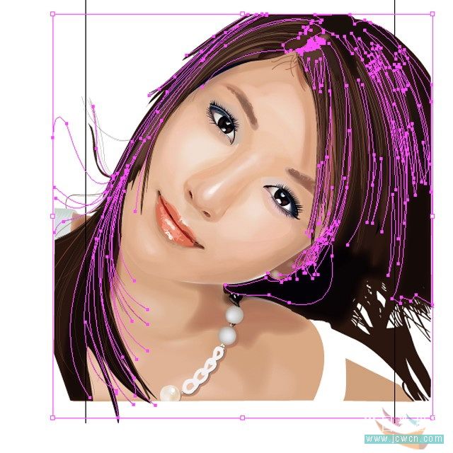 32接下來是苦活了,頭發絲需要一根一根的加上去,用鋼筆點選邊框上色