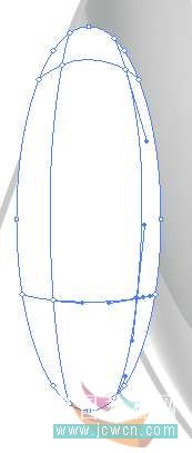 2、使用直接選擇工具(白箭頭),對橢圓進行調整如下圖。將橢圓的最上方的節點拖到中間偏上的位置(3/2左右),拉長此節點手柄。