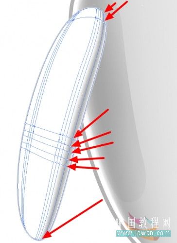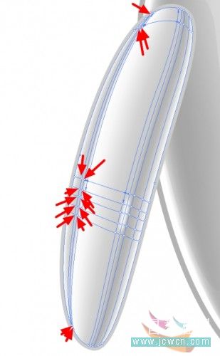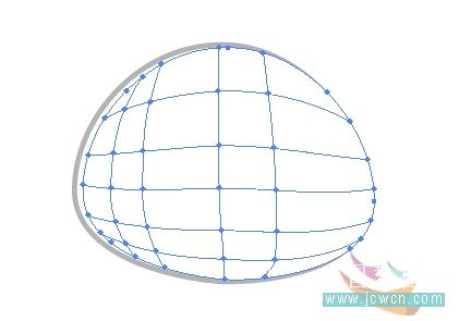 可以先畫一個橢圓,設置二根基本網格線 ,然后對這個添加了網格的對象拖成左手的形狀,再添加細節網格線。這樣,你會發現網格線變的很好控制。