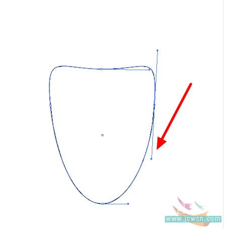 3、選擇分別調整左右節點的手柄,將橢圓的下半部分往里收,如圖: