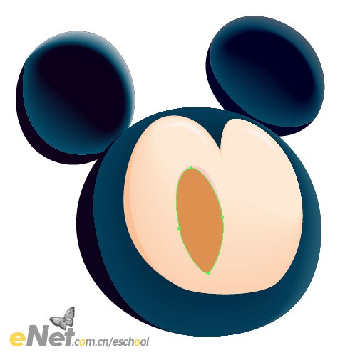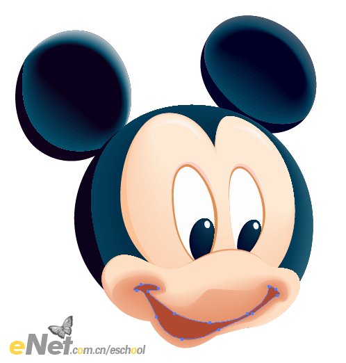 (32)面部的繪制方法同前,這里就不多說了。嘴部繪制后就不用進行混合了,填入較暗的紅色即可,這樣更加能夠體現米老鼠卡通形象的夸張可愛的表情。