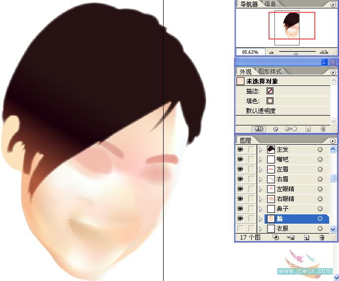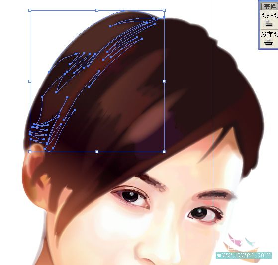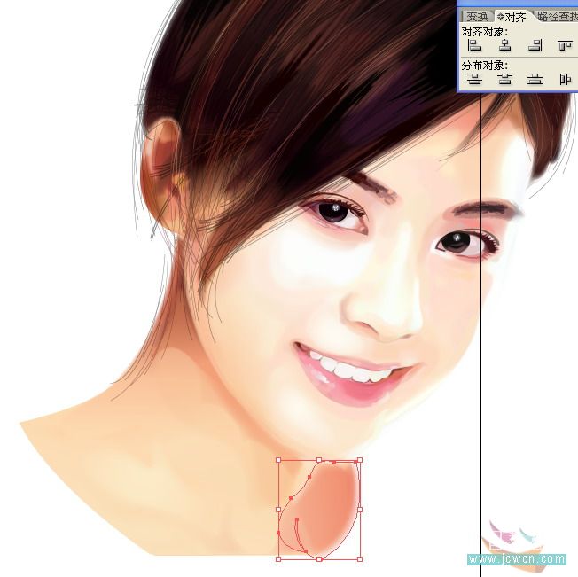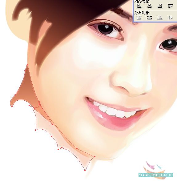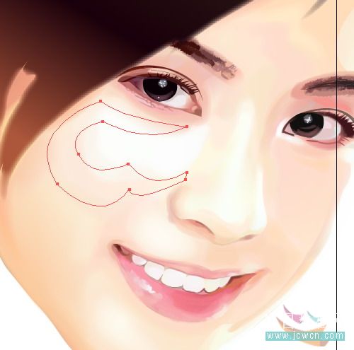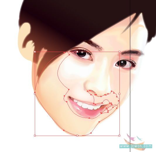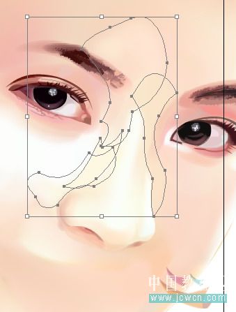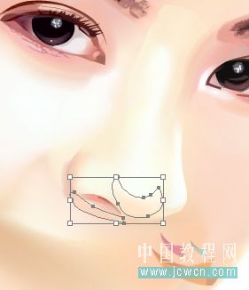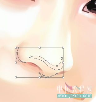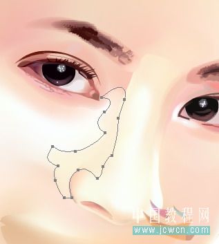 51用“直接選擇工具”盡心變形,慢慢變換到鼻子的造型。