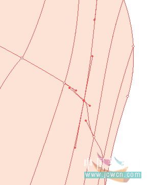5隨后,在此網格線上繼續添加如下圖所示的網格線條,不需要添加太多,注意以之前添加的主線為中心,兩邊要線條數量相等,以便之后的變形,這些網格線條是作為變形后的骨格支架用的。