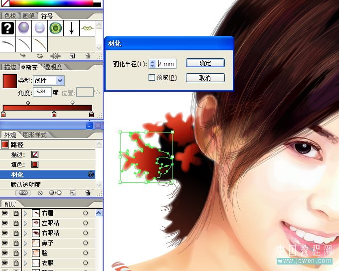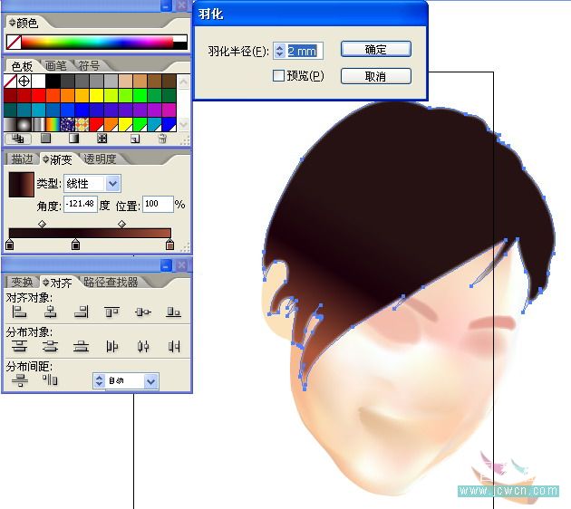 115加上些頭發的裝飾,運用下漸變加羽化系數2。