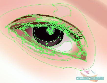 26加上眼球,眼白角上背光處加上環境色,從暗紅到粉色漸變,羽化1左右。