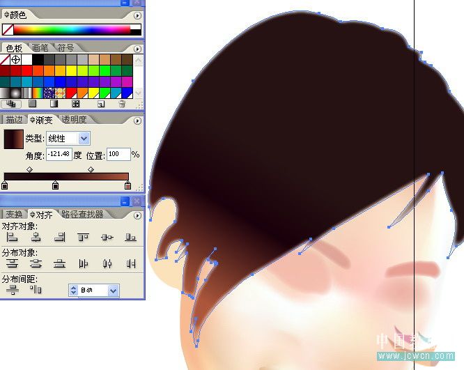 21把頭發的大體底色撲好,這里運用下漸變由深入淺變化過渡。