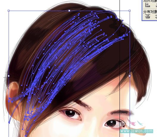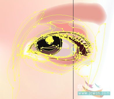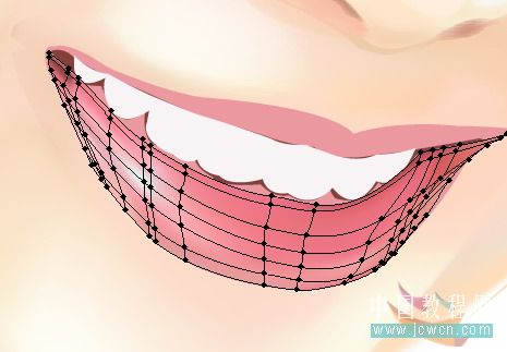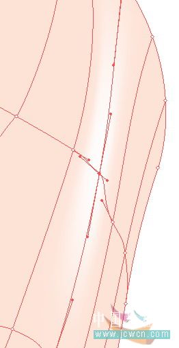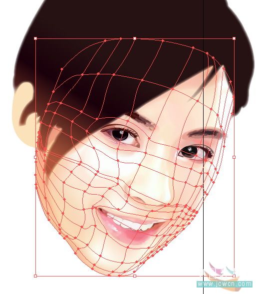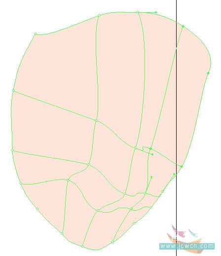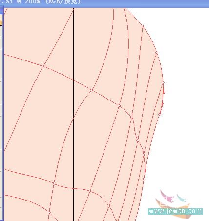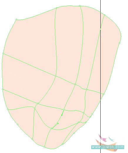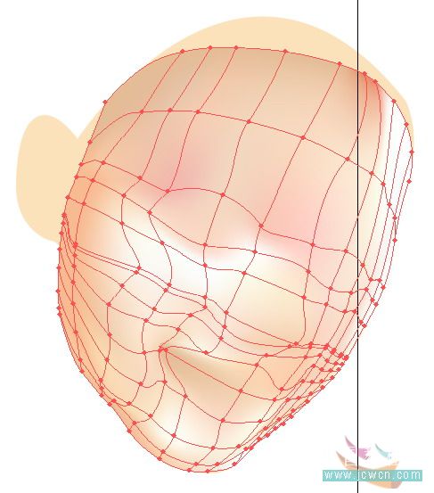 8運用“直接選擇工具”慢慢改變網格的造型,注意主線的位置要在整個臉的中間,不然以后加網格線會線條亂竄。
