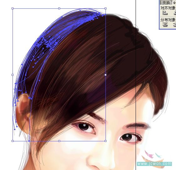 這次繪畫制作我們要引入個新的工具——網格工具,這個工具的運用將大大加快寫實ai繪畫的效率,是一個非常出色的繪畫工具。而這次關于頭發的繪制不再做詳細的描述了。