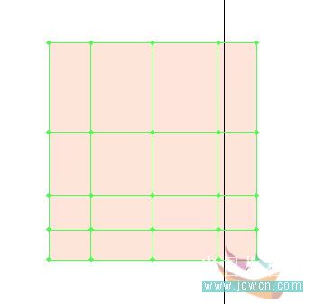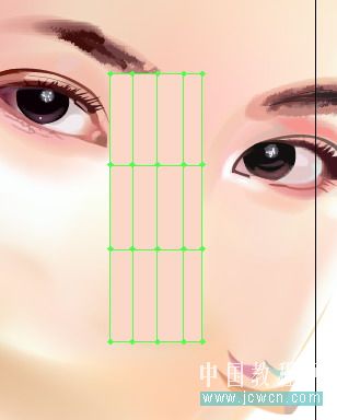 50和之前畫臉部一樣,運用矩形工具畫個長方形,在其內部添加網格線,下圖為變形前的鼻子骨格線。