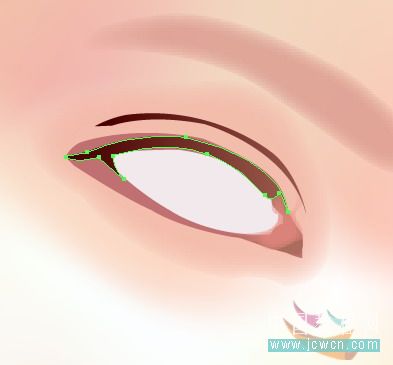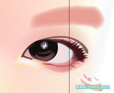 24好啦,開始繪畫心靈之窗啦,先把右眼框定位啊,眼白不要用純白,這里人物都是偏紅潤的色彩,所以稍微偏粉紅。