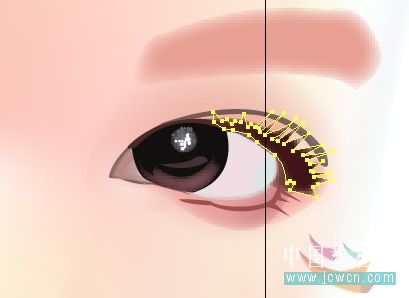 33下邊的睫毛不要太清晰,可以稍微加點淡淡的處理,透明度30%就可以了。