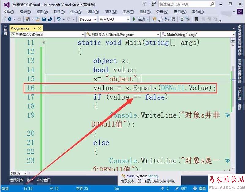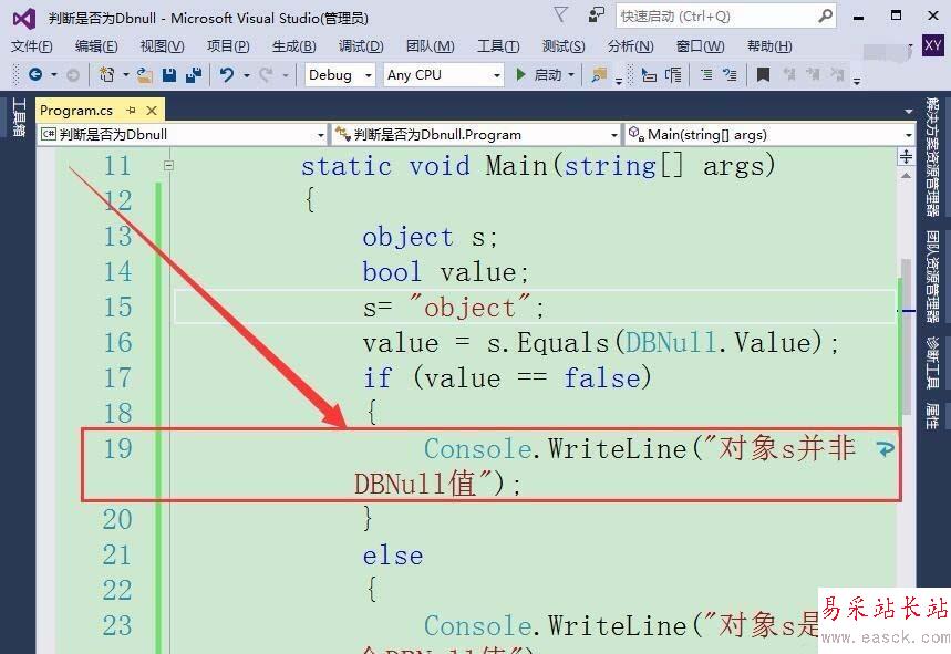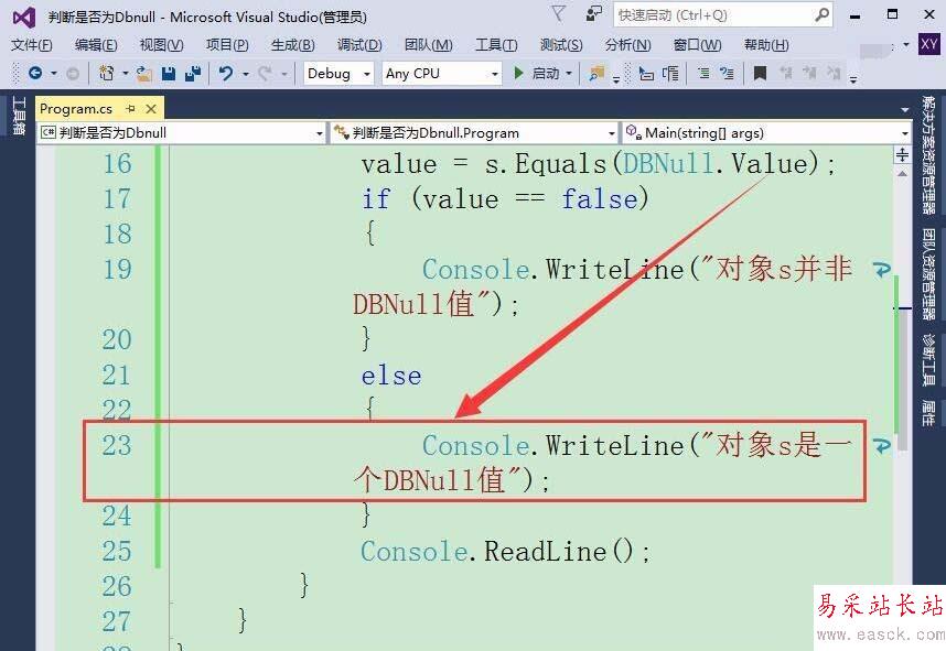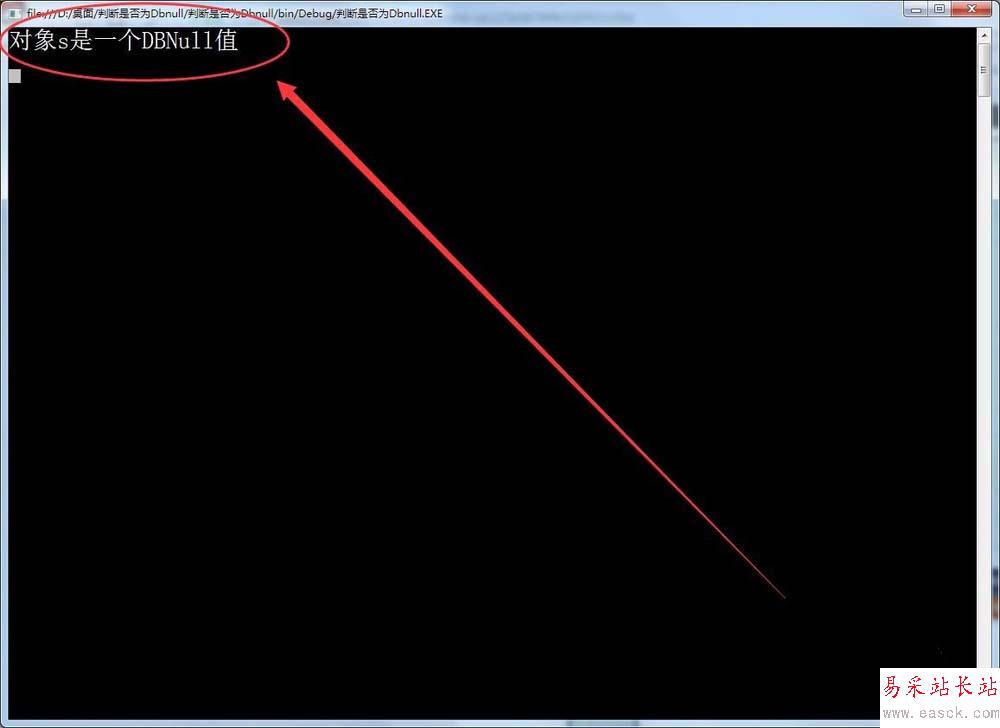 7、最后,當(dāng)條件不成立時(shí),即值為真時(shí),則輸出對象s是一個(gè)DBNull值。