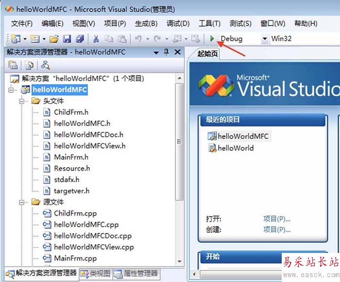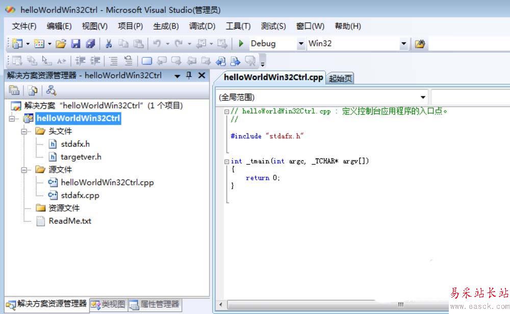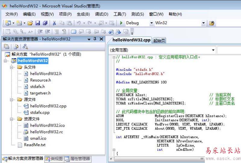 2、最后創建的WIn32項目的程序結構以及運行效果如下所示
