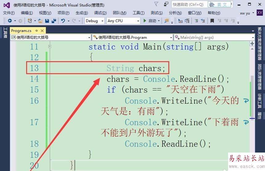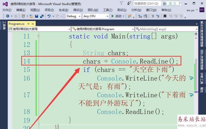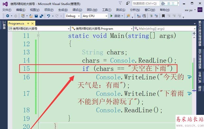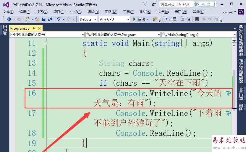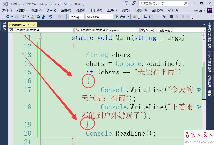 Visual Studio使用if語句判斷條件,默認只能執行一條語句,如果要執行多條語句則需加上大括號,該怎么使用大括號呢?下面我們就來看看詳細的教程。