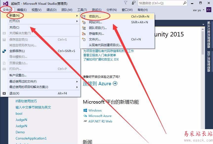 1、打開Visual Studio軟件,單擊文件---->新建---->項目,創建一個應用程序項目。