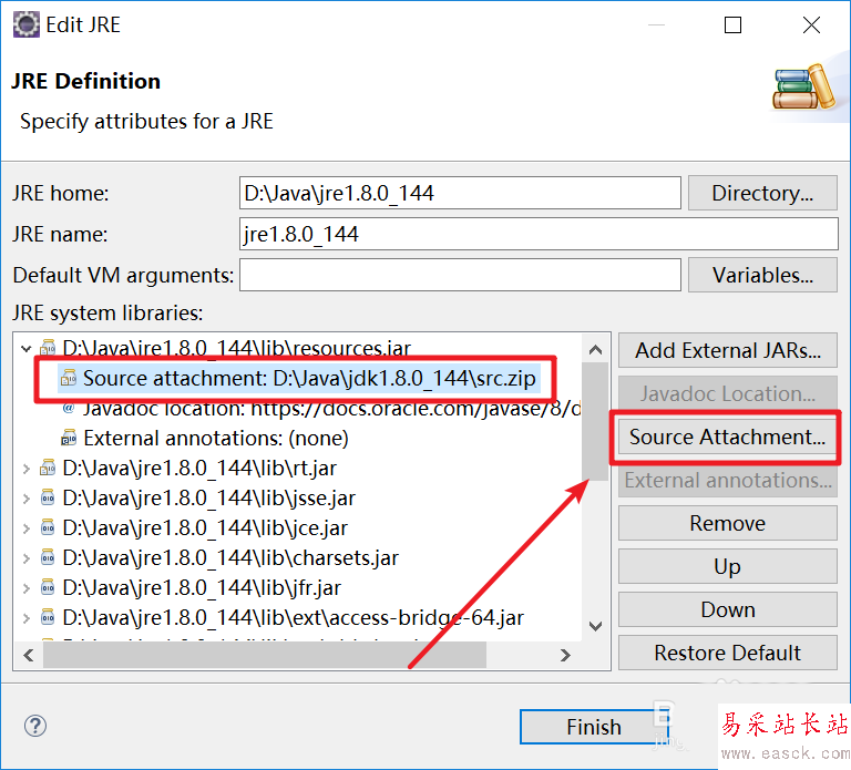 5、點擊如圖所示的左邊框,點擊右邊的【Source Attachment】