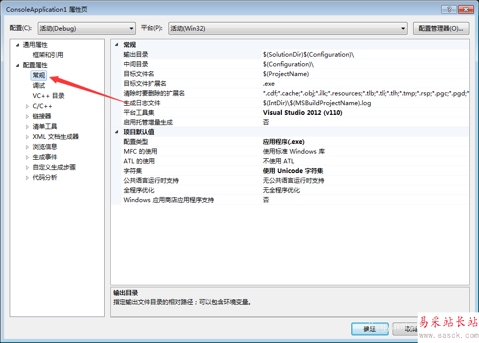 4、點擊配置屬性里面的常規選項。會出現右邊一些選項。