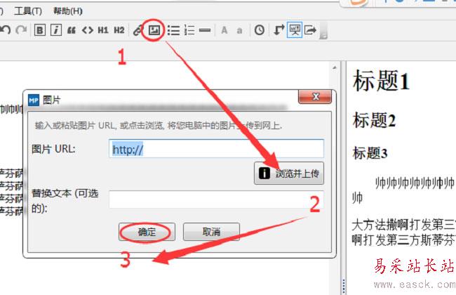 5、如果你需要插入圖片,可以選擇工具欄上的圖片按鈕,瀏覽并上傳中找到本地圖片。然后點(diǎn)擊確定。