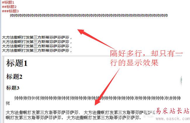 4、段與段之間的換行:無論空幾行,都只有一行的換行顯示效果。