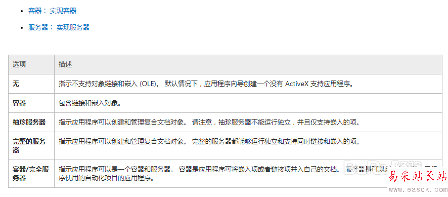 6、復合文檔。主要就是是否需要容器和服務器,一般程序不需要,選擇“無”,點擊下一步