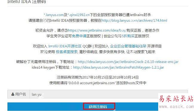 1、該程序的注冊碼獲取的方式很簡單,首先進入http://idea.lanyus.com/網址