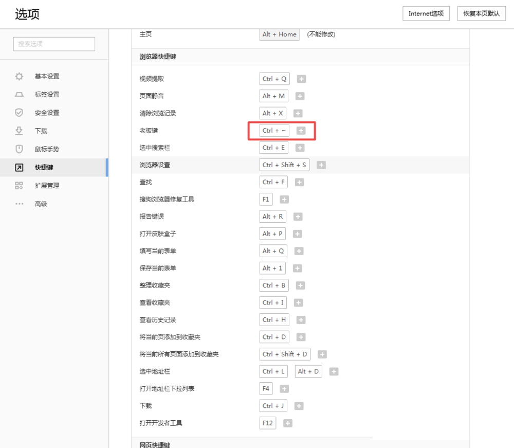 4、瀏覽器的快捷鍵大部分情況下在瀏覽器之外不起作用,一般不會引起沖突。但也有個別快捷鍵會在瀏覽器之外也起作用。比如老板鍵,插件的截圖功能等。