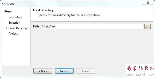 5、然后再選擇你要clone到本地的位置。
