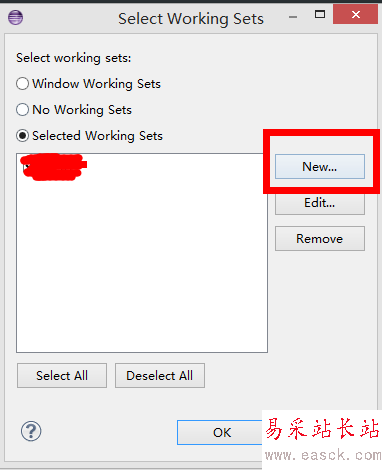 5、選擇文件的范圍,默認為整個工作空間,可以點擊右邊的choose自定義,在彈出的窗口中點擊New...;