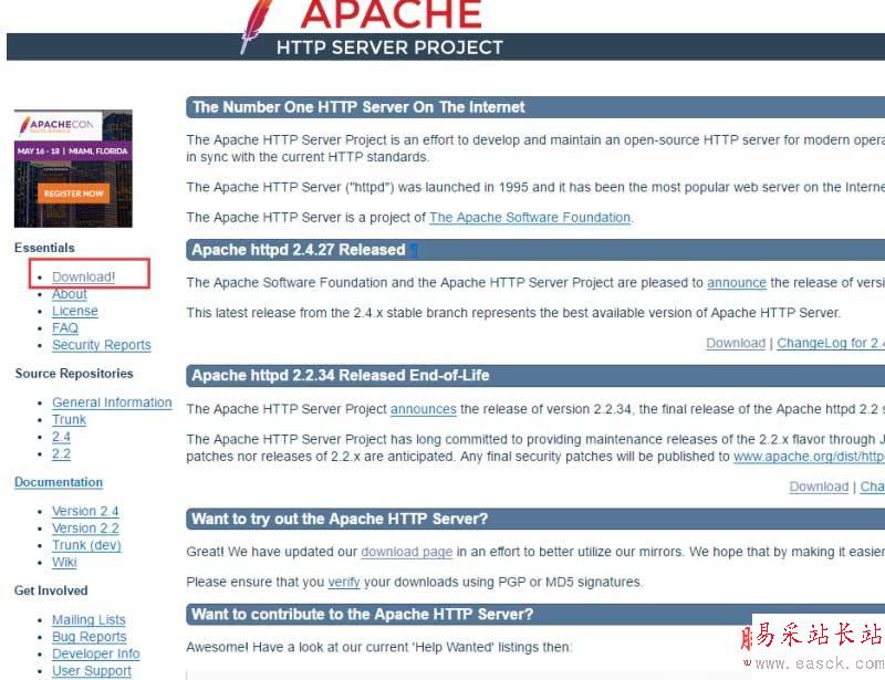 1、進入apache服務器官網http://httpd.apache.org/,這里我們以下載穩定版的
