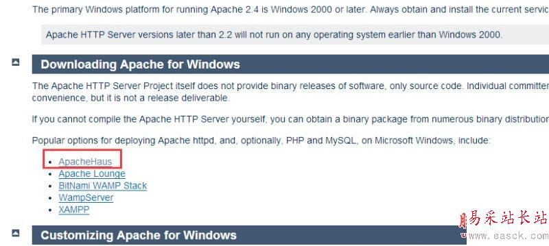 其中后兩個是有名的wamp以及xampp集成環境,如果只想下載apache可以選擇前三個網站,這里我們第一個ApacheHaus為例。